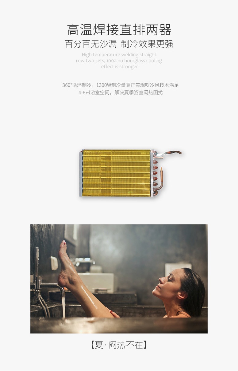 夏·悶熱不在:360°循環(huán)制冷,1300W制冷量真正實現(xiàn)吹冷風(fēng)技術(shù)滿足,解決夏季浴室悶熱困擾