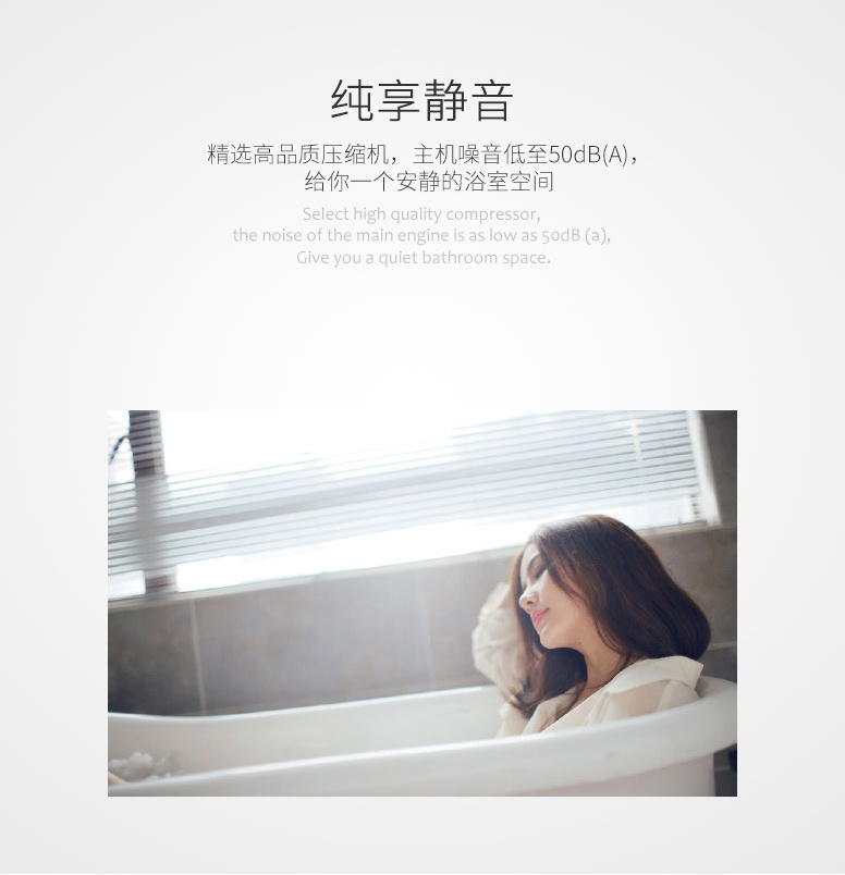 純享靜音:精選高品質(zhì)壓縮機(jī),主機(jī)噪音低至50dB(A),給你一個安靜的浴室空間。