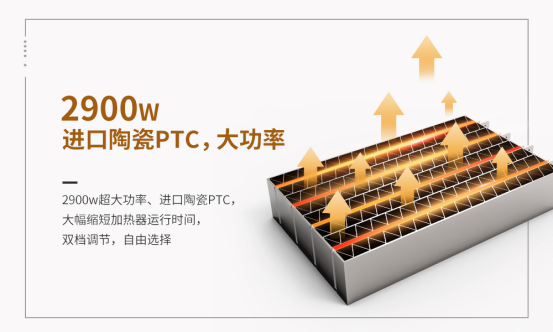 2900w超大大功率,加上進(jìn)口陶瓷PTC,大幅縮短加熱器運(yùn)行時(shí)間,升溫快速,同時(shí)擁有雙檔調(diào)節(jié),自由選擇,滿足不同人的取暖需求。